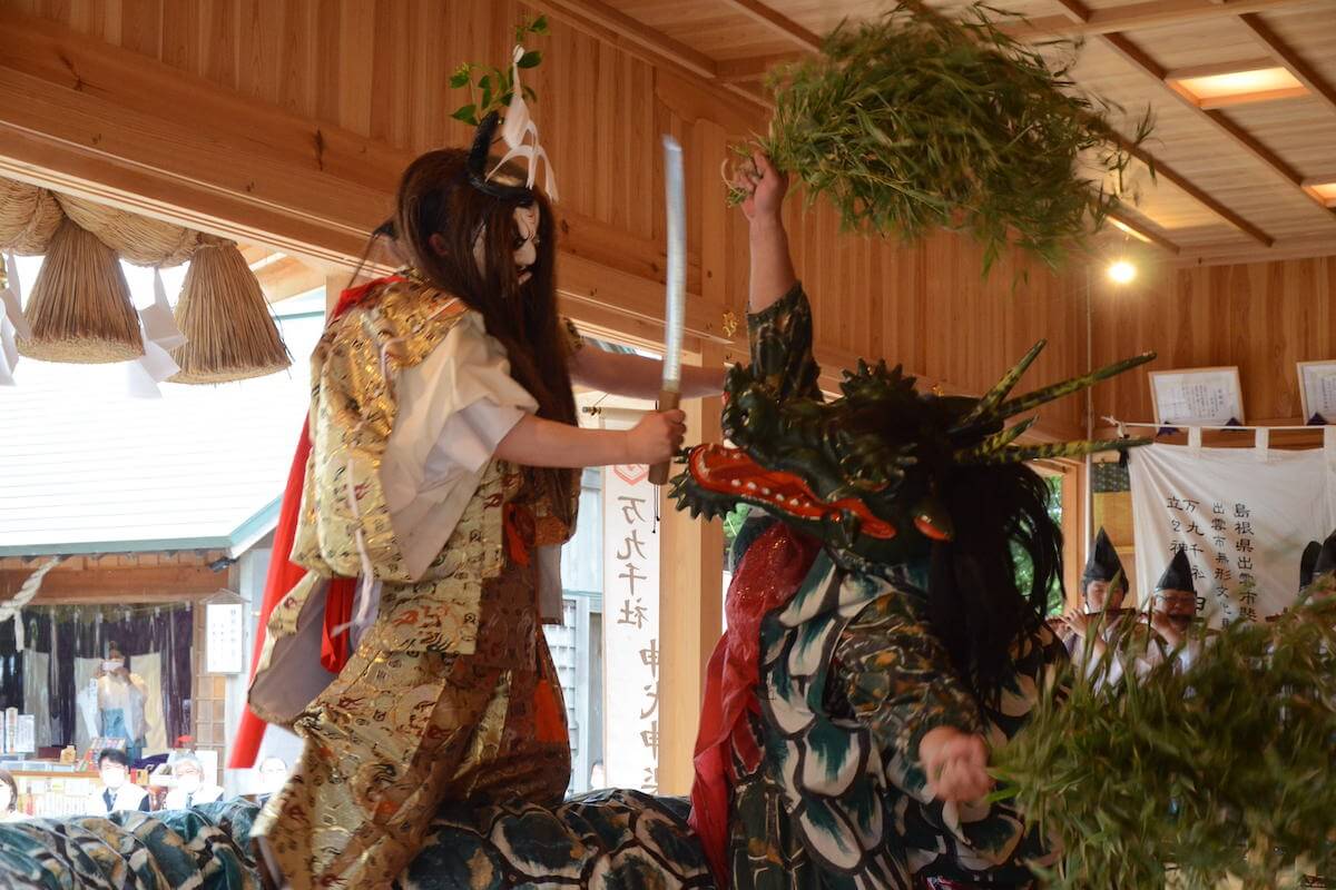 出雲の神在月(かみありづき)に全国から集まり、神議(かみはかり)を済ませた八百万神様たちは最後に当社に立ち寄られます。そして会議をしめくくり、名残の宴(直会・なおらい)を催して、全国各地へお帰りになるのです。