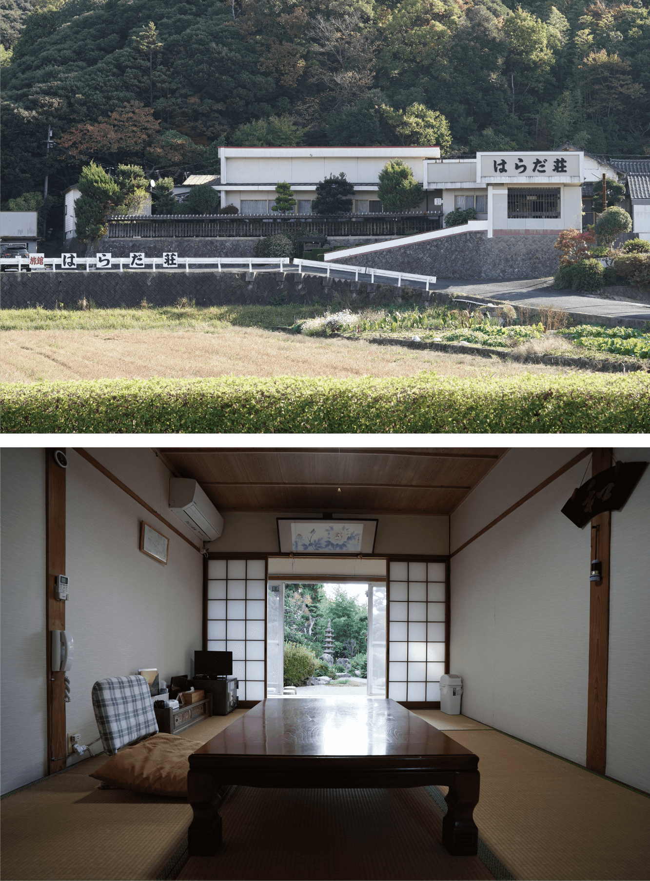 ようこそ、はらだ荘へ。当館は昭和レトロ感の感じられる老舗旅館で、館内から眺める大小さまざまな庭園は心を落ち着かせてくれるでしょう。眺める時間や季節よって移り変わる、その風情をお楽しみください。